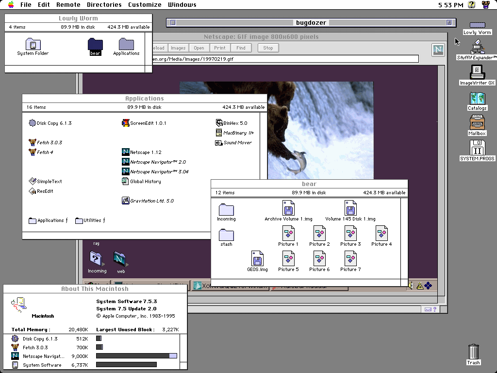 | 1995 • 1024 × 768 PNG (127 KB) | Macintosh System 7.5 Update 2.0 Screen capture: Macintosh IIci with SuperMac Spectrum/24 IV display adapter & System 7.5.3. |