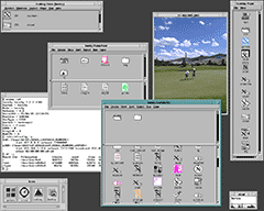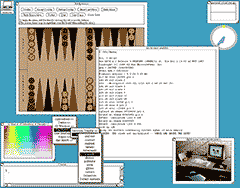 | 1988 • 1152 × 900 PNG (46 KB) | Network Extensible Window System Screen capture: Sun 3/60 — SunOS 3.5, showing unbundled NeWS environment. Though SunView emulation is provided so the standard SunOS SunView applications will work, the display server is Postscript only. This predates the merged NeWS + X11 display server from the early OpenWindows releases. |